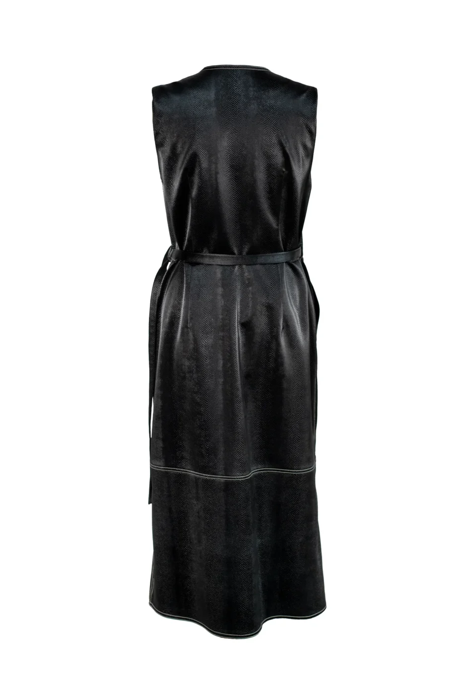A statement version of the wrap dress, the HART Dress brings an edge with its slightly reflective, snake-textured surface. The structured fit and subtle sheen play with light, giving it both depth and movement. The wrap-style silhouette ties at the waist for adjustable shape, while contrast stitching adds a touch of attitude.